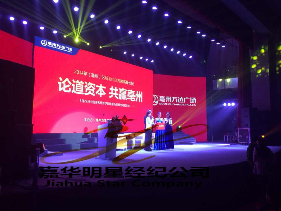 3月29日,亳州萬達通過嘉華明星經紀公司邀請著名經濟學家陳淮出席2014年亳州區域與經濟發展高峰論壇。